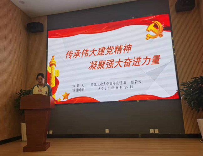 首先,侯若云同学以《传承伟大建党精神,凝聚强大奋进力量》为题,为同学们深刻解读了建党精神内涵。同时结合习近平总书记在庆祝中国共产党成立100周年大会上讲话内容,对建党精神进行了透彻分析。宣讲以百年党史短片《这百年》作结,带领同学们回顾了中国共产党百年来的光辉历程。