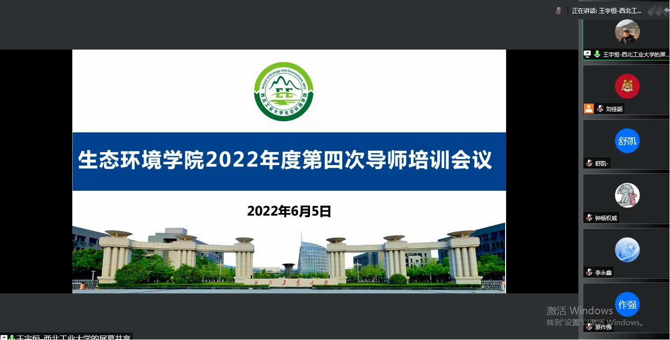 于6月5日上午召开学院2022年度第四次导师培训会议暨2022年博士研究生招生指标分配、招生复试工作安排、研究生招生宣传动员会议。会议由副院长王宇恒主持,学院全体研究生导师线上参会。