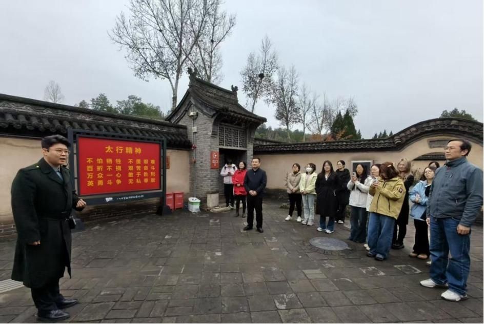 在八路军总部砖壁旧址与王家峪旧址,红色故事成为最生动的思政教材。师生们聆听左权将军“以身殉国、忠勇为民”的英雄事迹,感悟老一辈革命家的家国情怀。山西省革命文物故事宣讲“十佳讲述人”史肖楠老师为师生讲授专题党课《无私奉献树丰碑 铁血铮铮见太行》,以鲜活的革命故事诠释了太行儿女的责任担当;随后,史老师为师生带来红歌《在太行山上》,“千山万壑,铜壁铁墙,抗日的烽火燃烧在太行山上,气焰千万丈”的激昂歌词响彻旧址院落,让红色基因在歌声中浸润心灵。