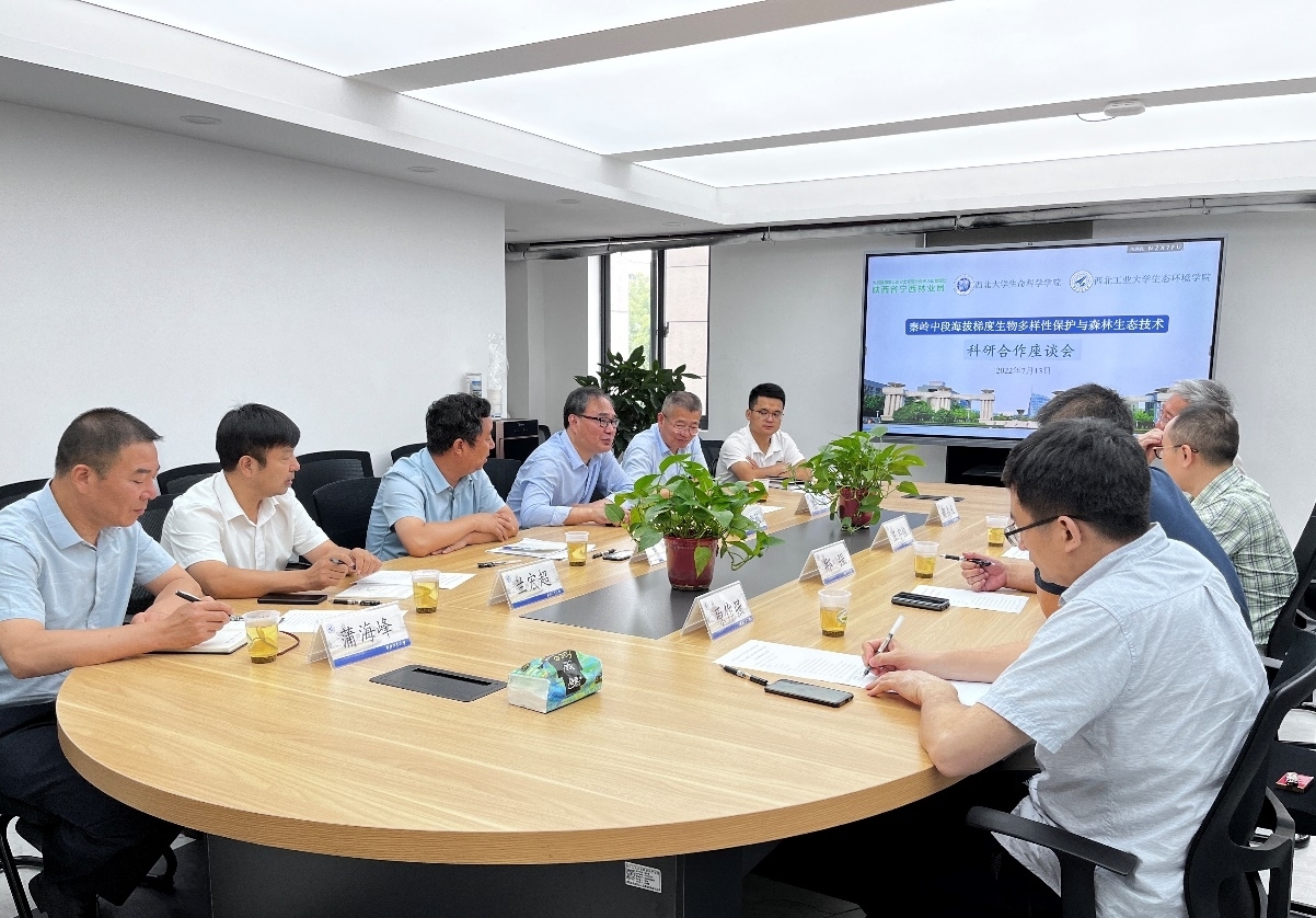 科技工作高质量发展行动计划》有关要求,扎实推进学院巡视整改工作,全面推动有组织科研,加强学院在秦岭生态环境保护方向的布局,7月13日上午,学院组织召开科研合作座谈会,陕西省宁西林业局党委书记辛力、林政资源科科长兰宏超、林政资源科副科长蒲海峰、皇冠林场副场长胡佳乐、西北大学生命科学学院院长付爱根、教授岳明、漫画同人