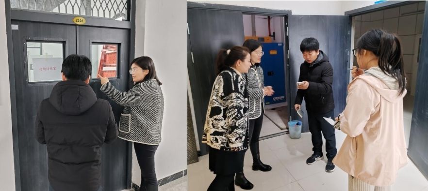 检查组在实验室认真查看了各类仪器设备实验物品的摆放与使用情况,详细询问了部分实验设备使用管理流程,对可能存在隐患的用电设备、安防设施等逐一进行了排查,针对发现的问题现场提出整改要求和整改期限确保实验安全有序进行。
