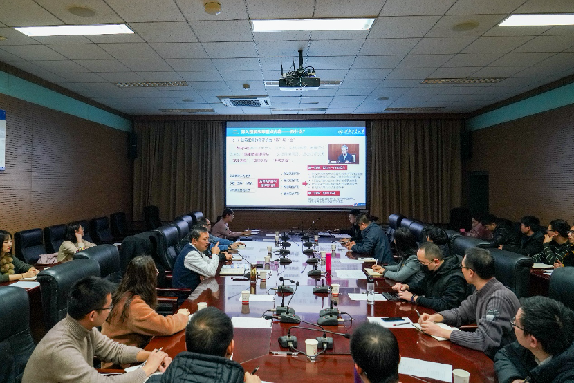 师生讲授了一堂专题思政课。学院党总支副书记(主持工作)牟蕾、副院长王宇恒、党总支副书记张永鑫,教授委员会主任王文、教学委员会主任邱强,以及学院办公室全体管理人员、教师代表及学生代表等聆听了本次课程。