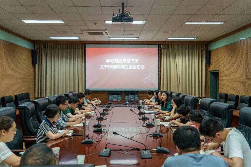 首先,牟蕾带领学院全体教职工,共同学习了习近平总书记关于师德师风的重要论述,引导学院教师争做“有理想信念、有道德情操、有扎实学识、有仁爱之心”的好老师, 以赤诚之心、奉献之心、仁爱之心投身教育事业。