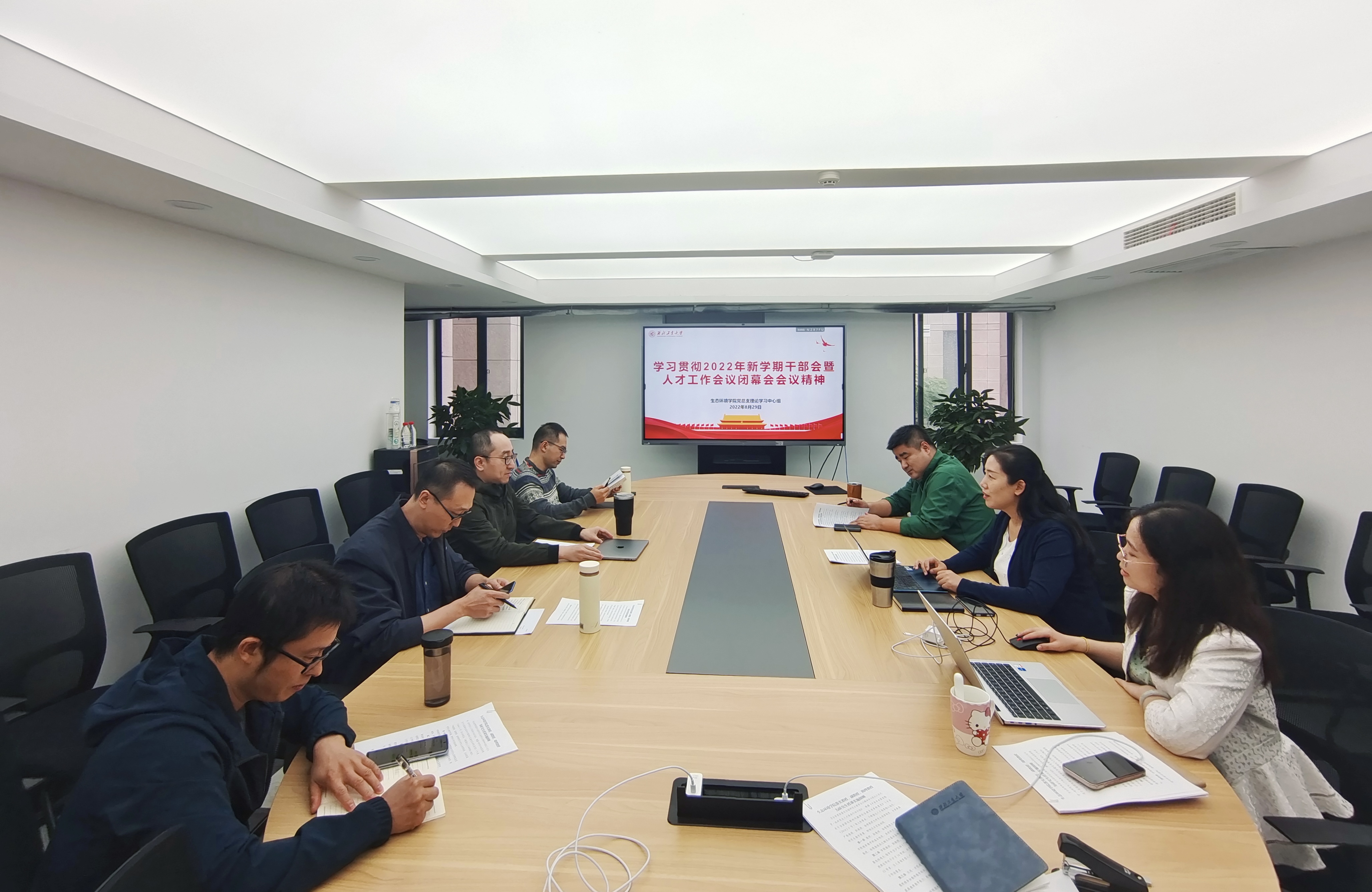 牟蕾传达了学校新学期干部大会暨人才工作会议闭幕会会议精神,结合校长的主题报告及四个行动计划,进一步强调要加强党对学院人才工作的全面领导,加强一流人才引进,深化人才发展体制机制改革,抓住学院作为专项试点改革学院的发展契机,凝心聚力、主动出击,心怀“国之大者”、培养一流人才;坚持“四个面向”、有组织地科研,扎实有效地推动学院各项工作高质量发展,以实际行动迎接党的二十大胜利召开。