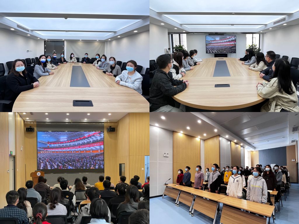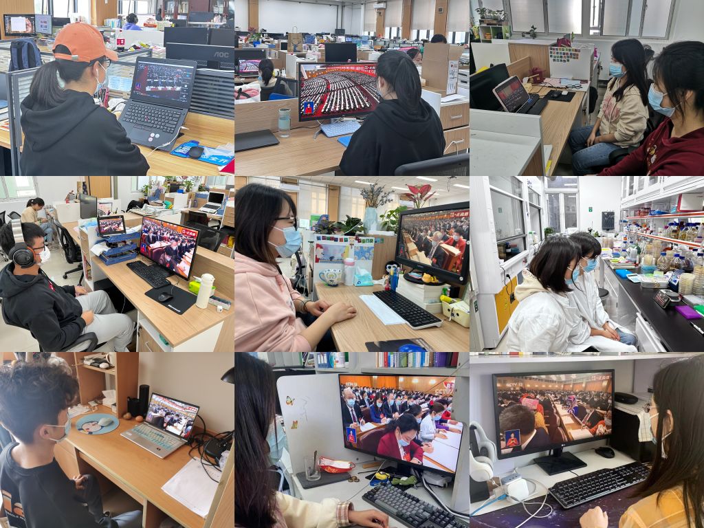 组织学院领导班子、党总支理论学习中心组成员、机关联合本科生党支部全体党员在学院综合会议室集中收看中国共产党第二十次全国代表大会开幕会。学院师生党员以党支部、科研团队、实验室为单位分别在党建活动室、研习室、实验室等地,通过电视、广播、网络等多种形式收看收听开幕会盛况。学院入党积极分子、发展对象在学院综合报告厅集中收看开幕会,认真聆听习近平总书记向大会所作的报告,共同亲历这一庄严的时刻,第一时间学习领会大会精神。