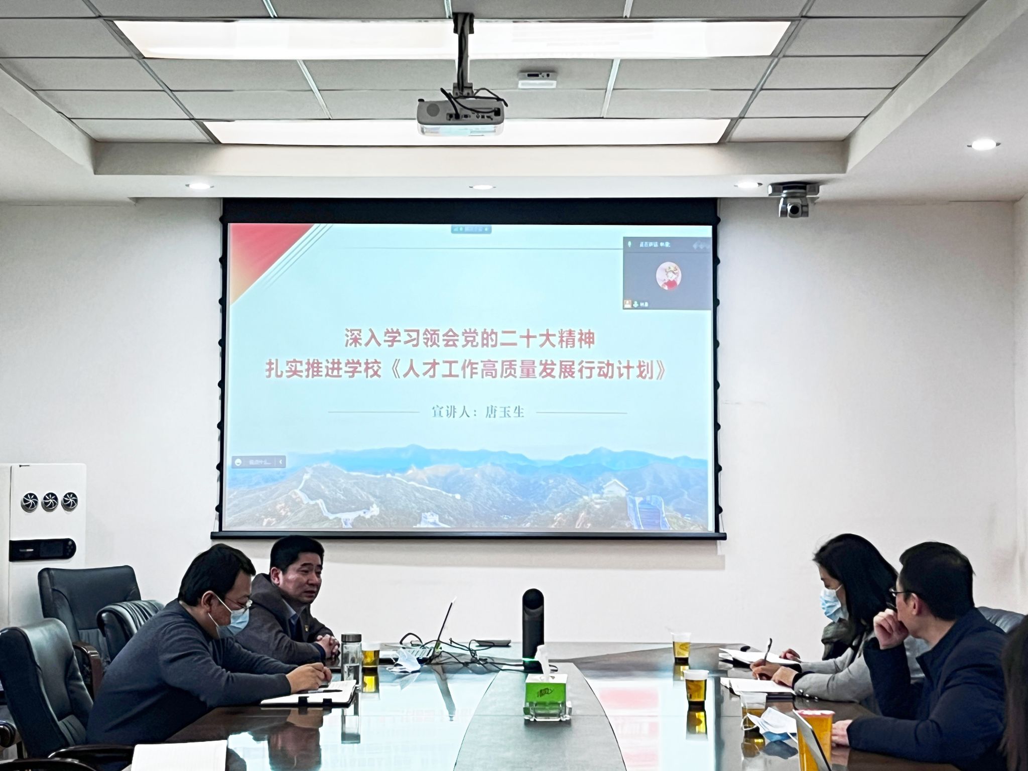 12月1日下午,漫画同人 邀请学校党的二十大精神理论宣讲团成员、人事处处长唐玉生作《深入学习领会党的二十大精神,扎实推进学校<人才工作高质量发展行动计划>》专题辅导报告,学院领导班子成员、中心组成员、各师生党支部书记和支委、以及全体教职工,通过线下与线上相结合的方式参加了学习。会议由党总支书记、副院长牟蕾主持。