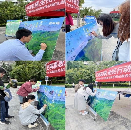 秦岭生态监测与保护师生融合党支部联合低年级本科生党支部在数字化大楼广场开展了“自觉践行习近平生态文明思想,全民行动共建美丽中国”六五环境日主题宣传活动。