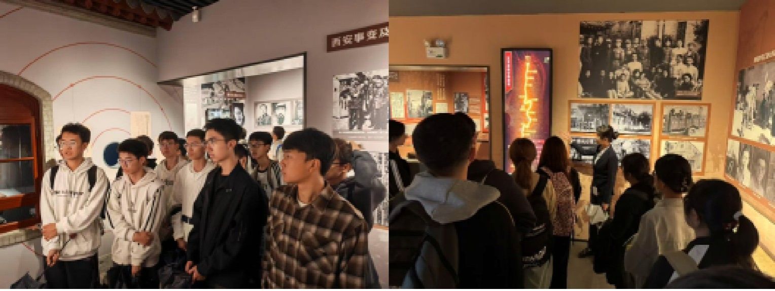 随后,师生一行来到西安事变纪念馆,在“历史的转折——西安事变史实陈列”展厅内,通过珍贵的历史文献、影像资料与场景复原,系统了解西安事变从酝酿、发生到和平解决的全过程。当听到张学良、杨虎城两位将军以民族大义为重,毅然发动“兵谏”,促成抗日民族统一战线初步形成的事迹时,现场师生深受触动。在“张学良公馆”旧址,大家实地参观将军们当年的工作与生活场所,感受革命先辈在复杂局势下的勇气与担当,深刻认识到“团结抗战”的重要意义。