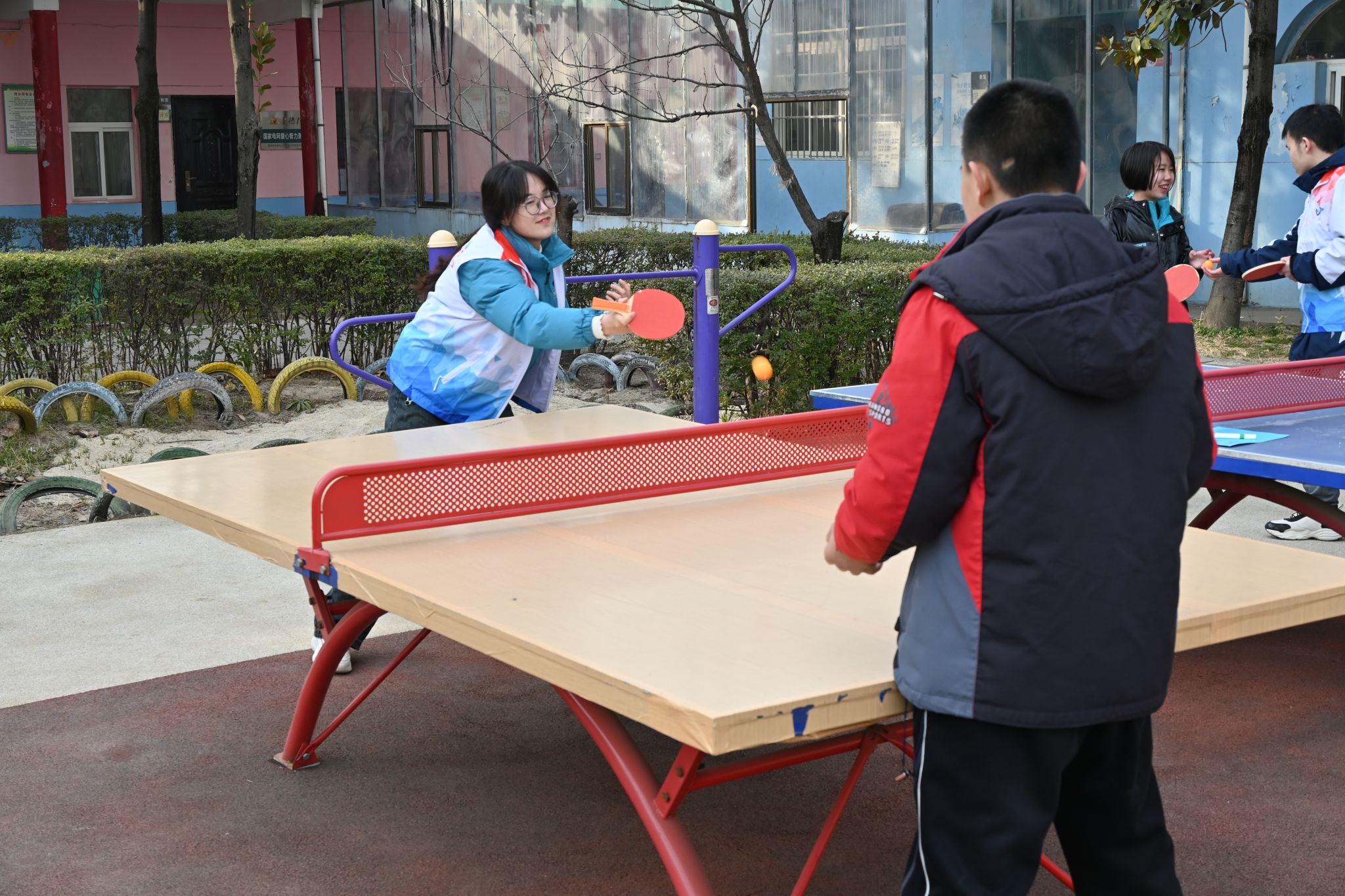 在丰富有趣的科普讲解之后,志愿者们和孩子们一起来到操场上参与各种活动,包括玩老鹰捉小鸡、抢凳子等游戏以及进行羽毛球和乒乓球运动。这些游戏和运动不仅考验了孩子们的反应能力,也带来了笑声和惊喜,同时也加强了孩子们与志愿者之间的心灵交流。在这些活动中,每个志愿者既是伴随者,又是倾听者,用心感受着每一个孩子的欢声笑语,用行动传递着温暖和关怀。志愿者们的拥抱和鼓励不断告诉孩子们,他们不是孤单的,只要有爱就有希望。