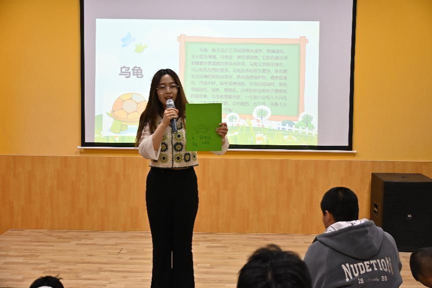 下午三点,志愿者们来到位于东大村的天爱智障儿童康复中心,开始了短暂但温馨的志愿之旅。首先,志愿者们通过准备的野生动物主题PPT向孩子们展示了动物世界的神秘之处。他们使用生动的图片和视频向孩子们讲解了鸭嘴兽、牦牛、鲸鱼等野生动物的特点和生活环境。志愿者们不时提出问题,孩子们热情地举手回答。随后,为了让孩子们更深入地了解和感受这些野生动物,志愿者们发放了纸笔和橡皮泥。在志愿者的引导下,一些孩子用笔勾勒出动物的轮廓,另一些则用橡皮泥捏出动物的形状。虽然孩子们的作品不完美,但每一幅作品都展现了他们的想象力和创造力。在短短的时间里,志愿者们与孩子们进行了心灵的交流,而不仅仅是知识的传递。