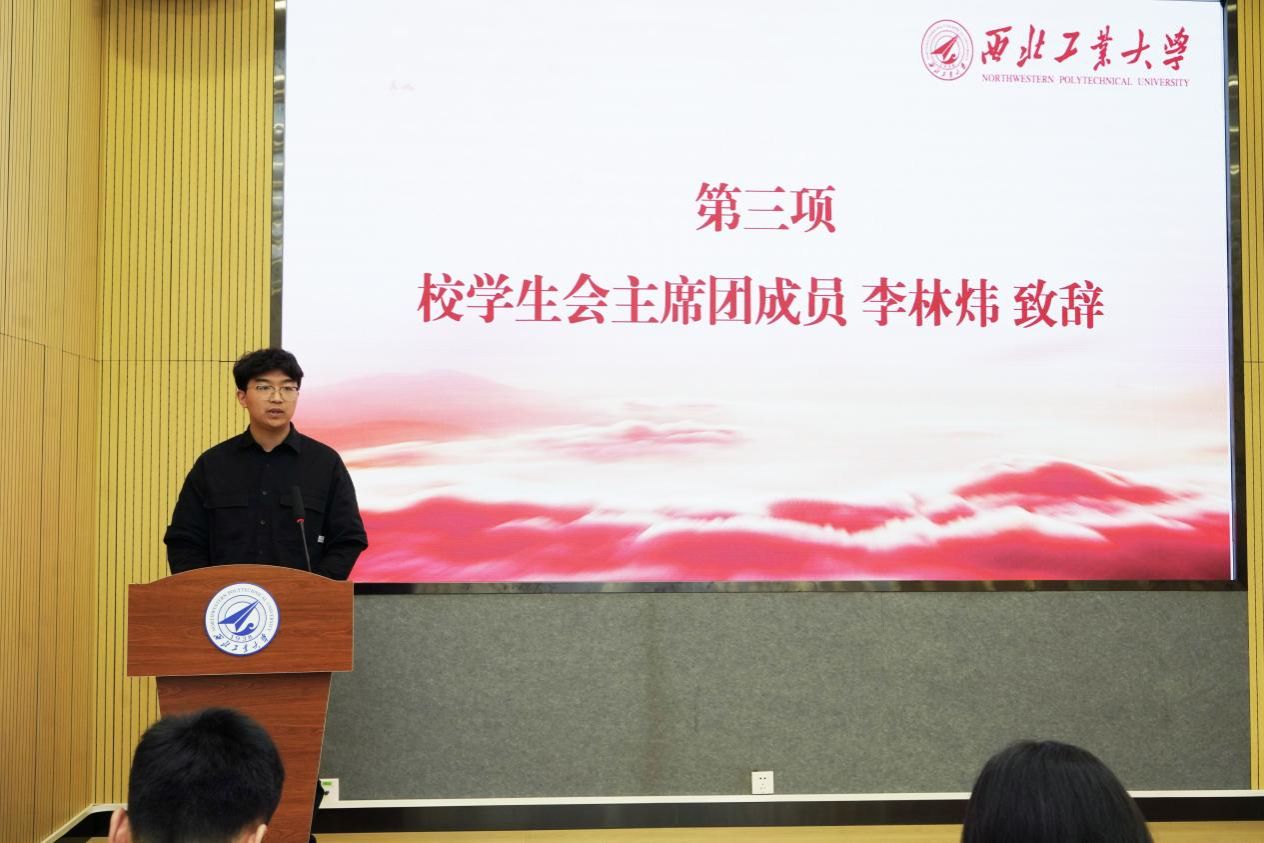 校学生会主席团成员李林炜致辞,向大家提出三点希望:一是勤于学习、善于学习,二是落实权益、保障到位,三是巩固成果、确保实效,并祝愿漫画同人